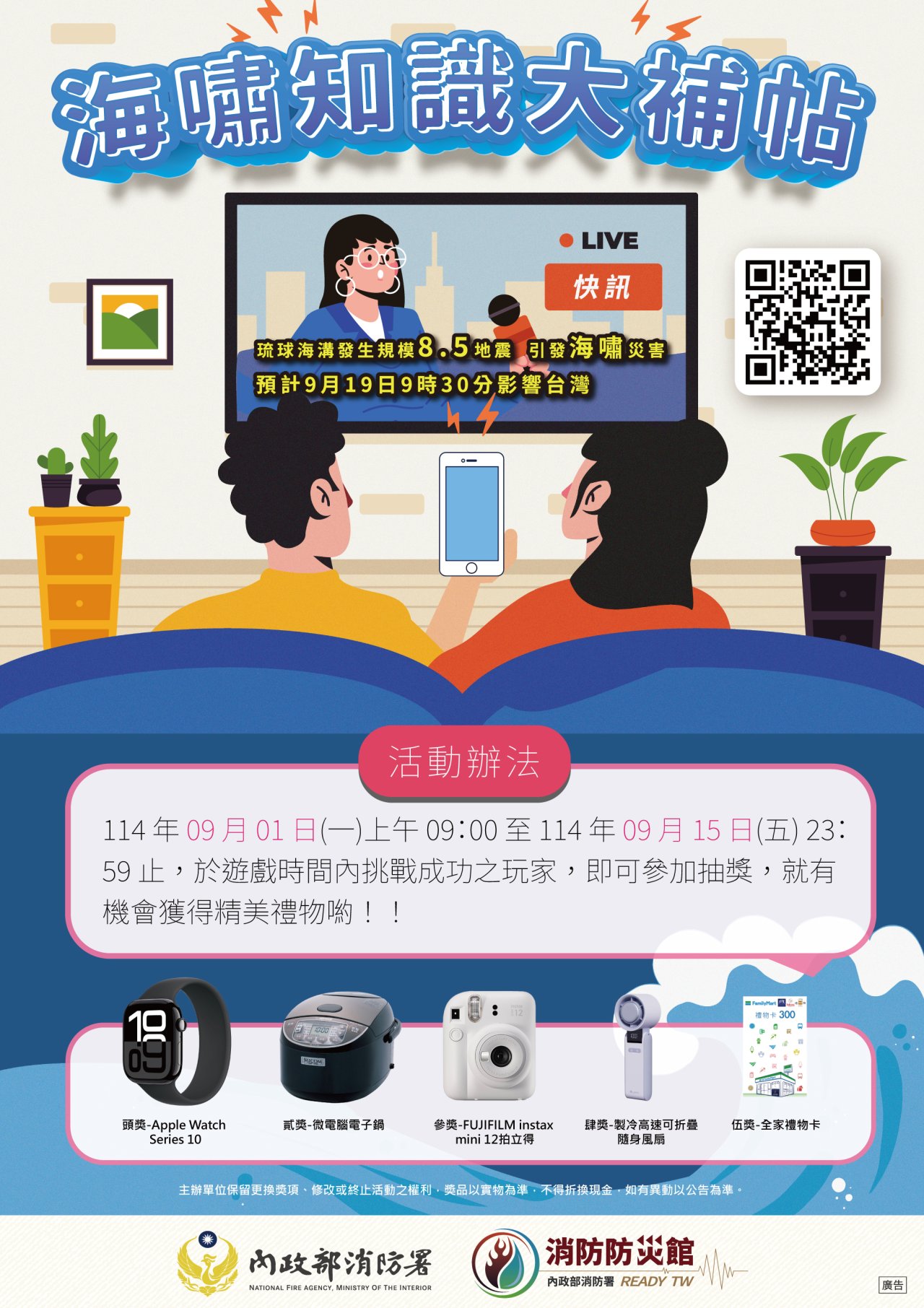 | 3、 | 防災遊戲-海嘯知識大補帖抽獎活動。 |